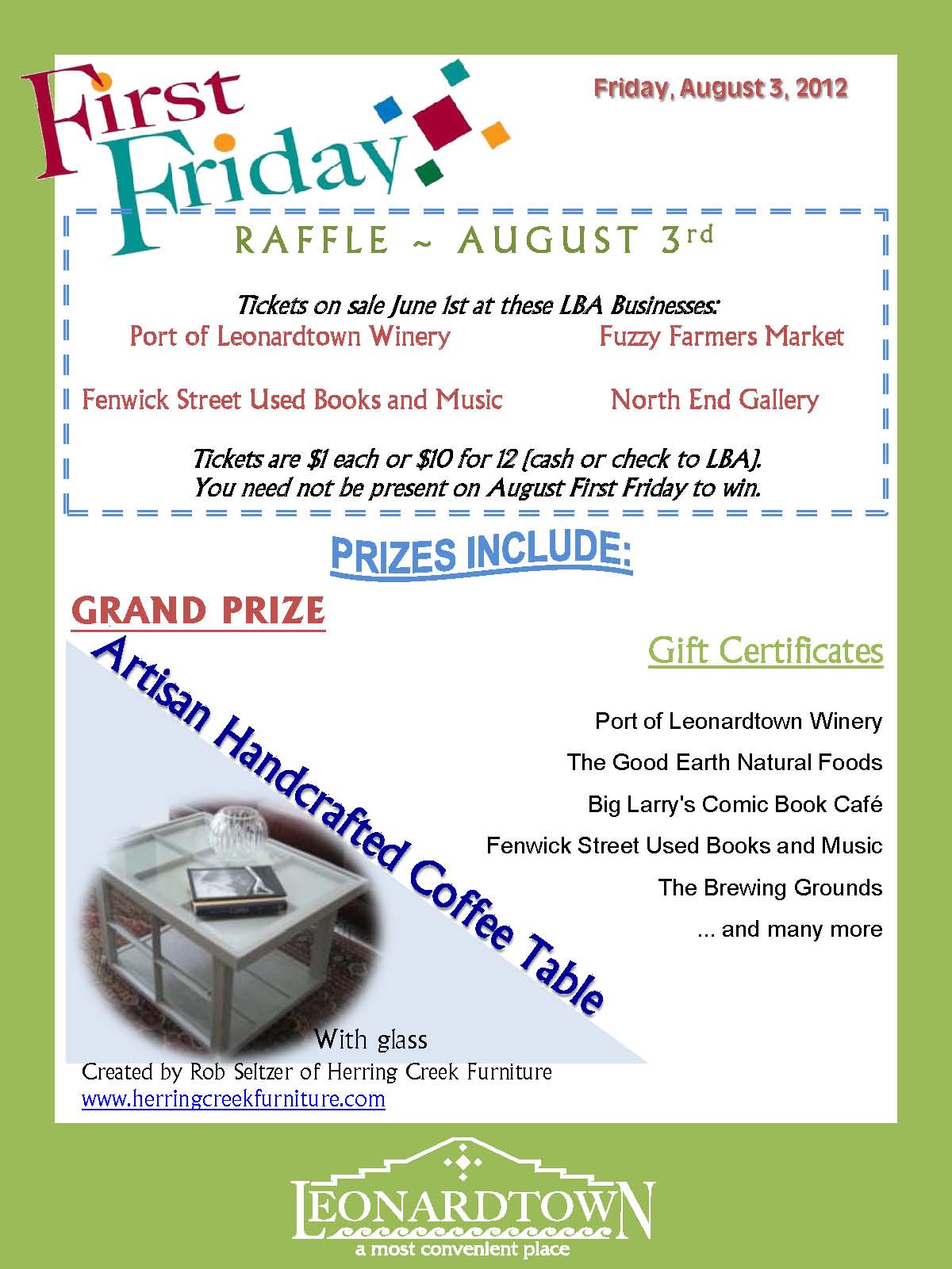 First Friday Raffle - Friday, August 3, 2012 - http://www.leonardtownfirstfridays.com/
