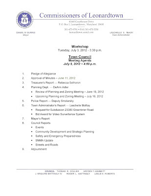 Town Council Meeting will be held on Monday, July 9, 2012 at 4:00 p.m.