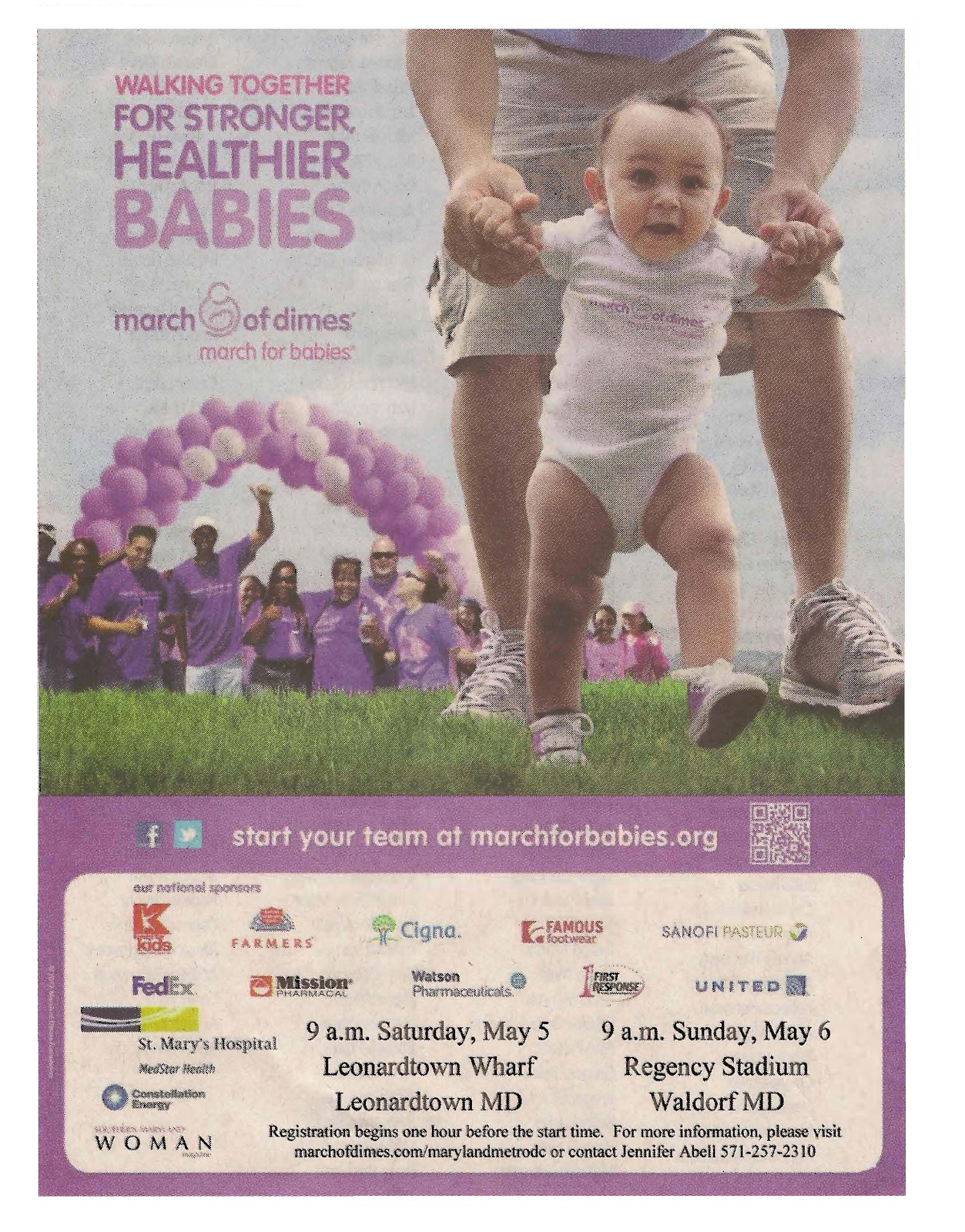 Join us for the March for Babies, and give hope to the more than half a million babies born too soon each year. The money you raise supports programs in your community that help moms have healthy, full-term pregnancies. And it funds research to find answers to the problems that threaten our babies. March of Dimes has been walking since 1970 and have raised an incredible $2 billion to benefit all babies.