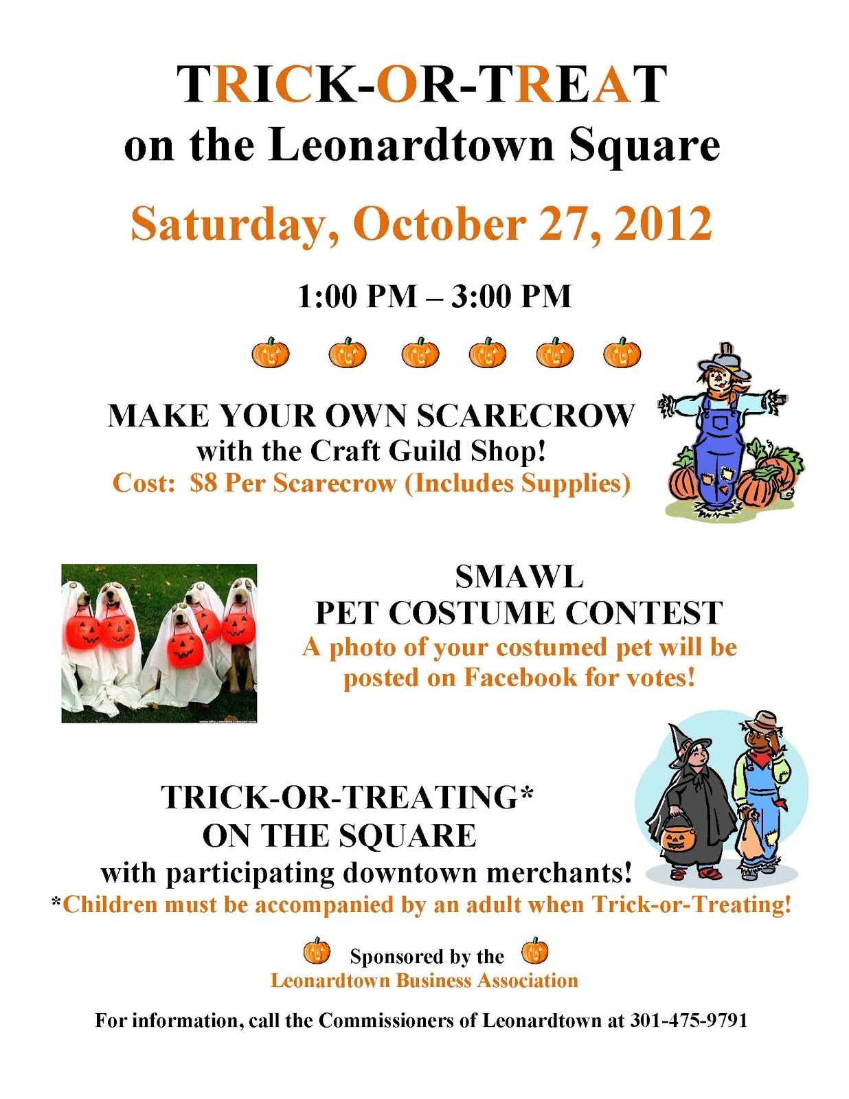 Make the most of your Halloween costumes this year by bringing your kids and your pets to the Square in Leonardtown! On Saturday, October 27, from 1 – 3:00 PM, the Town of Leonardtown, the Leonardtown Business Association, the Craft Guild Shop and the Southern Maryland Animal Welfare League will be hosting a fun-filled Fall festival for the whole family!
