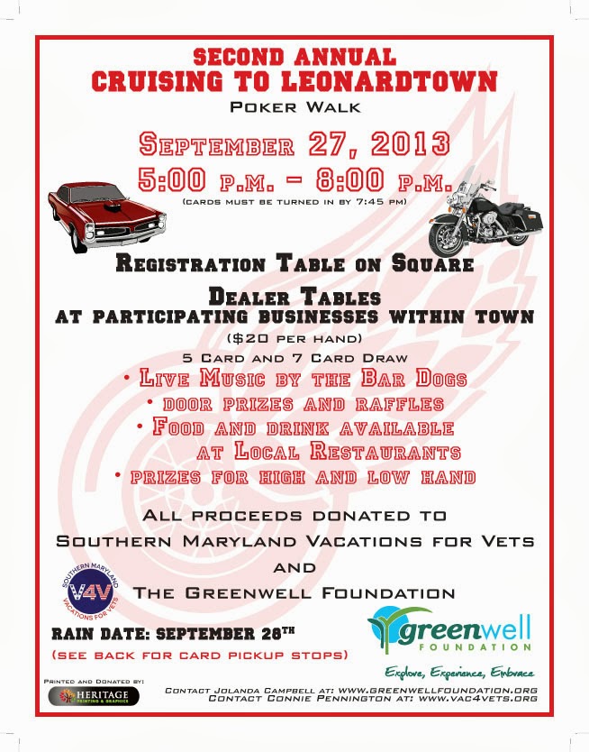 The Leonardtown High School Band Boosters Rhythm Run 5K race/1 mile fun run/walk starts at the Leonardtown Wharf at 9:00 a.m. and should conclude by 11:00 a.m.