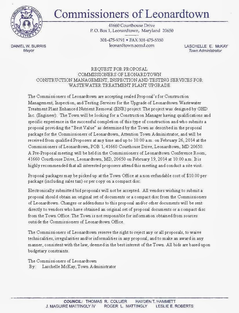 26, 2014 at the Commissioners of Leonardtown, POB 1, 41660 Courthouse Drive,