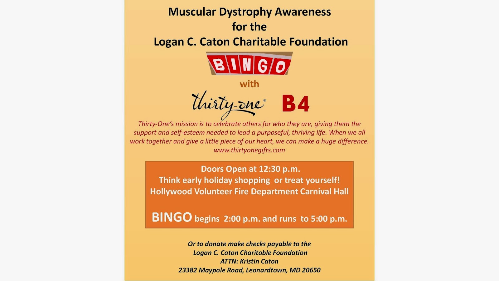 Time to Treat Yourself and help Muscular Dystrophy Awareness - Shopping and Bingo Fun on Saturday, October 18 - doors open at 12:30 pm and BINGO begins at 2:00 p.m