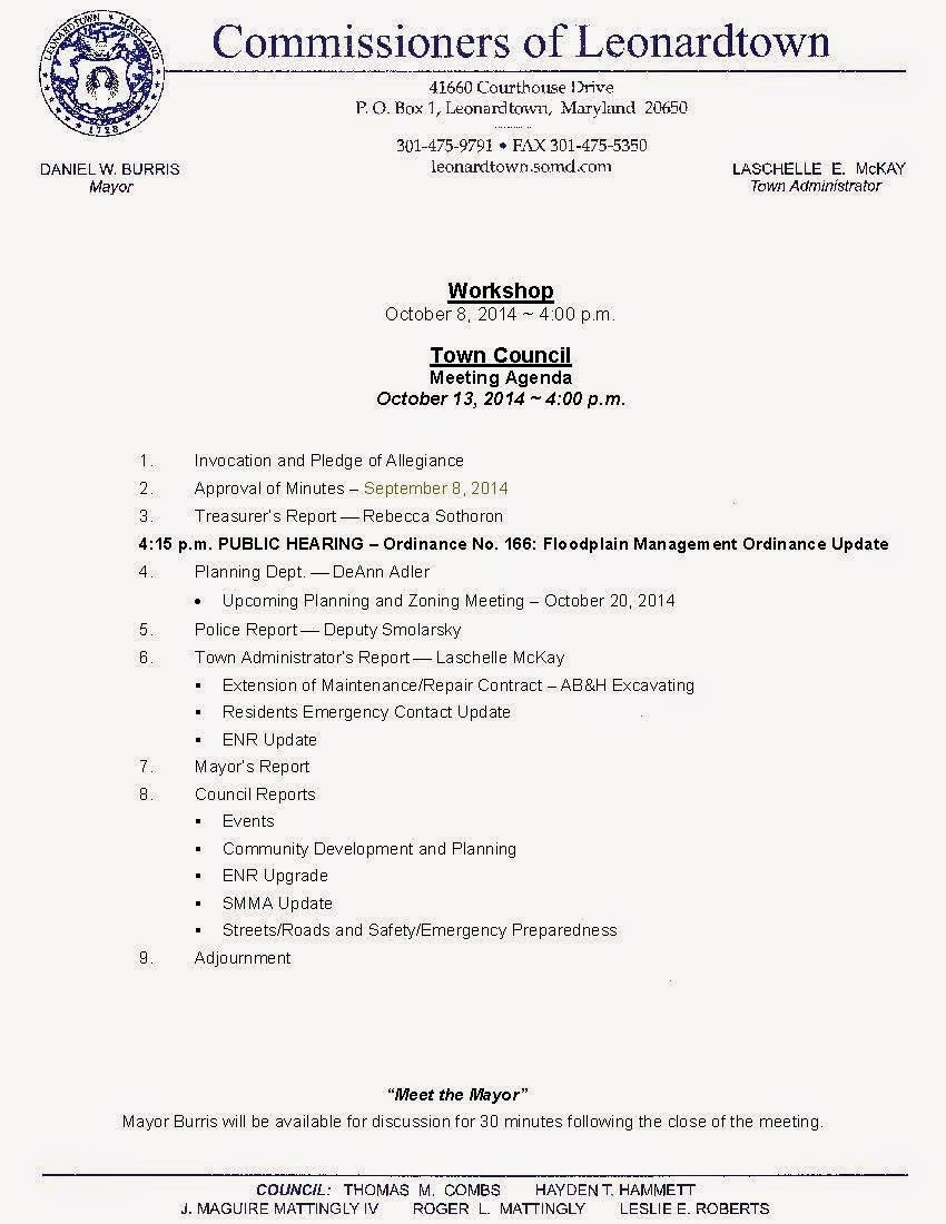 office of the Commissioners of Leonardtown, 41660 Courthouse Drive , POB 1, Leonardtown , MD 20650 ,