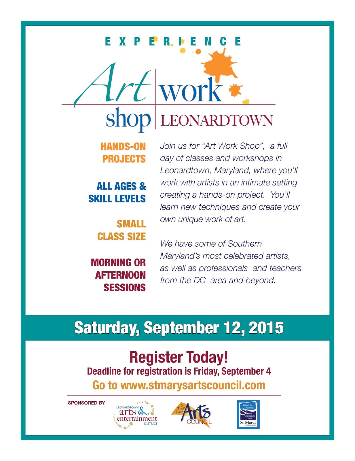 ART WORK SHOP LEONARDTOWN - Full day of classes and workshops in Leonardtown - 9/12/15